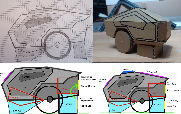 Das Cybertruck-Design von Tesla hasst man, oder man liebt es. Ich mag Dinge die verstehen zu polarisieren. Der Camper von Gerhard ist ja schon recht nahe an das Cybertruck-Design angelehnt. Diese durch unstimmige Proportionen quasi zunichtezumachen, ist für mich ein No-Go. Dann stoße ich mir doch lieber öfter mal den Kopf an im Camper :)